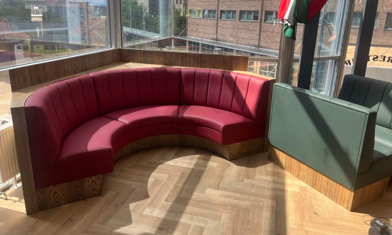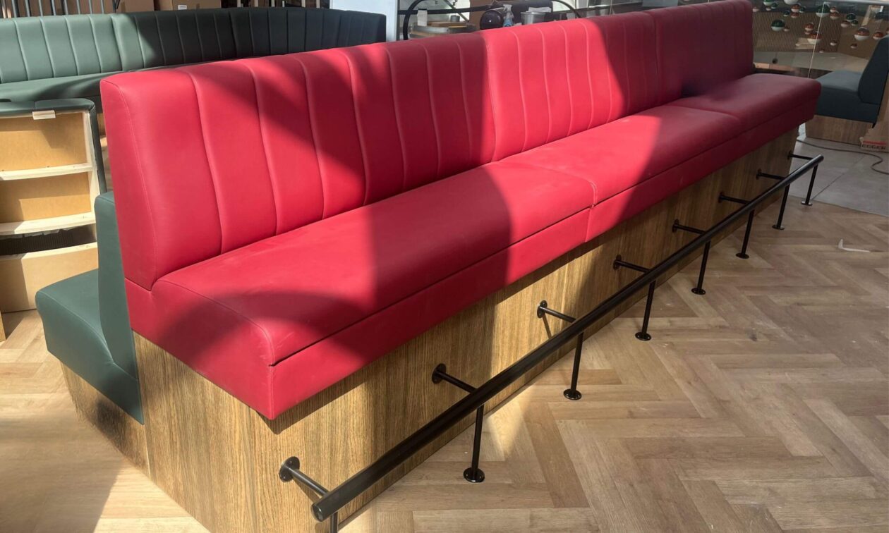 Siesta Glostrup har fået leveret helt speciallavede sofabænke til deres cafe. Bænkene er blevet lavet efter helt specifikke mål på både længde og højde, og med et specifikt valg af ægte læder