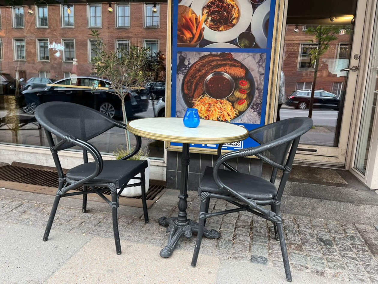 Burgerklubben - Frederiksberg har kjøpt Cheri lenestoler i svart/sort og bord i marmorlook med messingring og med løvefotunderstell