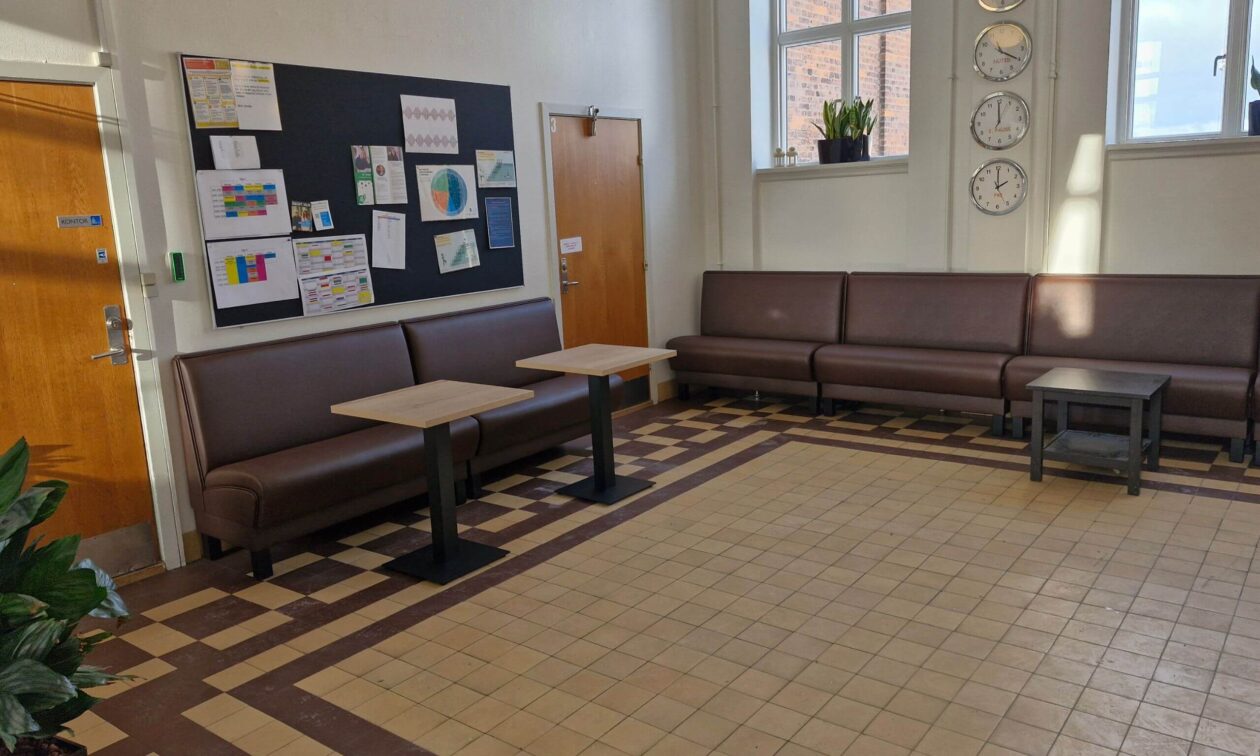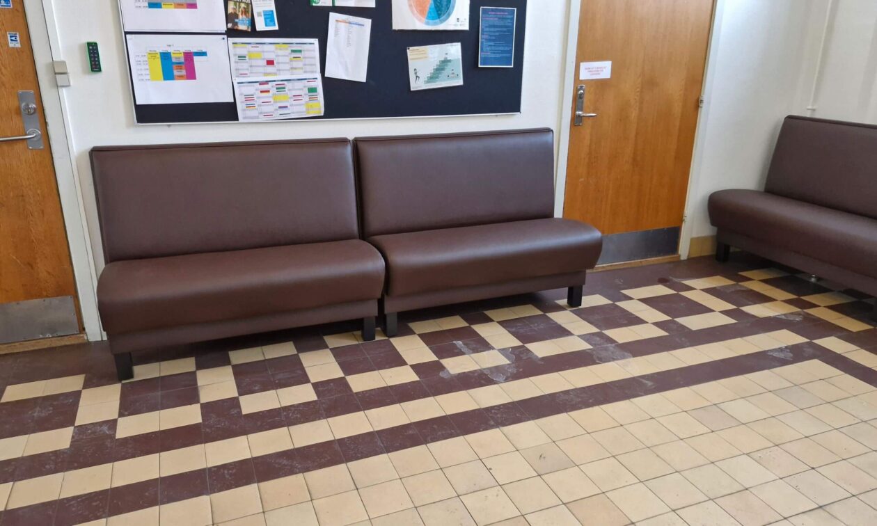 Dagskolen Odense har fået frisket deres omgivelser til ungerne op med vores Fairmont bænke i brun og vores skønne bordplader H1180 i ege look laminat. Alt skabt så ungerne kan boltre sig frit.