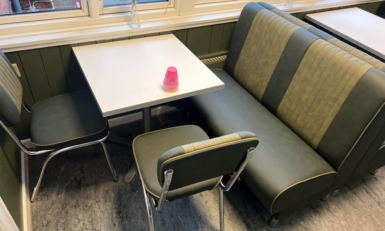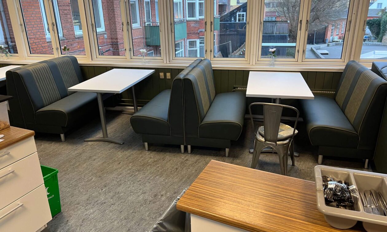 Fritidscenter Brønshøj-Husum - Klub Porten har fået lavet et helt nyt miljø til deres klub. Valget faldt blandt andet på dinerbænke; lavet lige efter deres ønsker om farver og mål