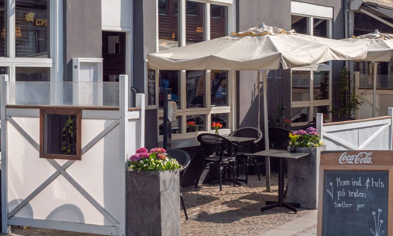 Restaurant Bryggergården - Roskilde har fått nye møbler til uteområdet sitt. Valget falt på Cheri utestol i sort/sort og Tabo Slate kompaktlaminat bordplater og Stable Table bordramme.