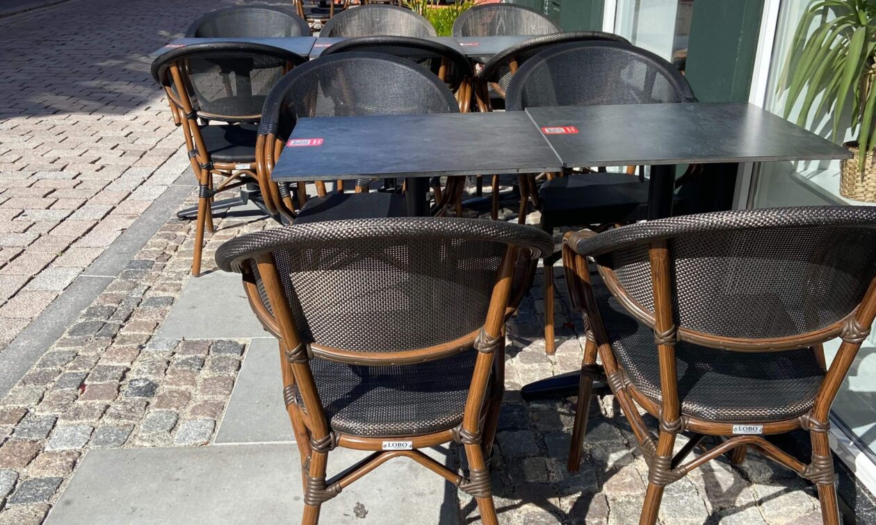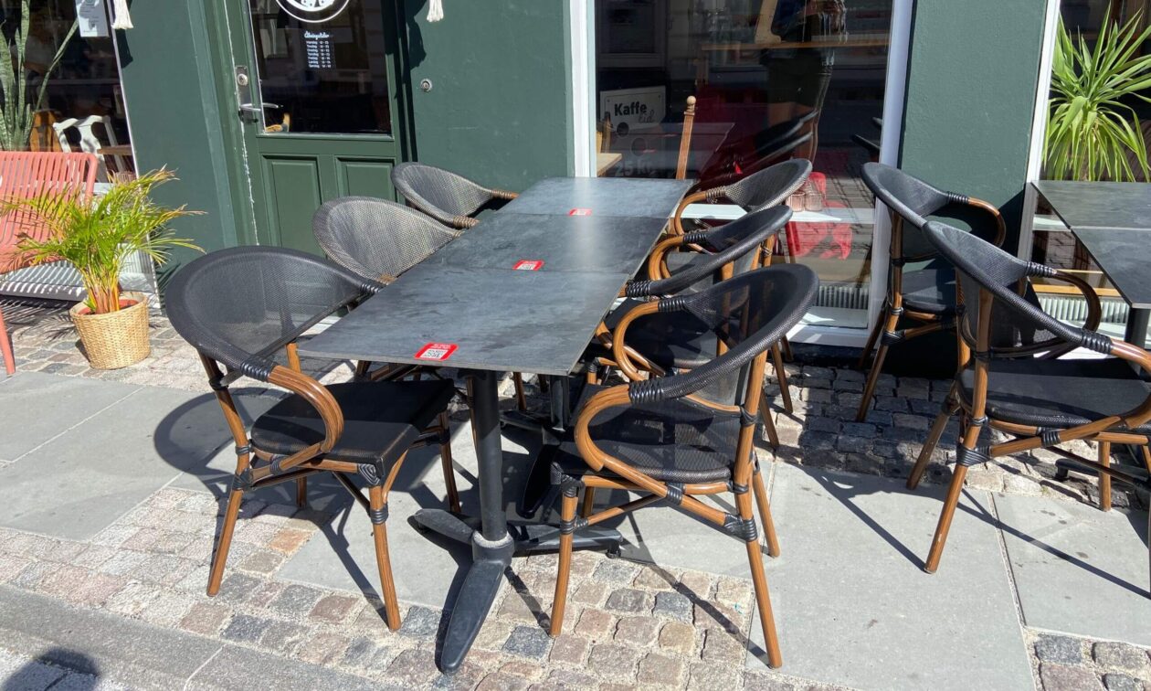 Spilcafeen - Aarhus - Vestergade - oppgraderte uteområdet sitt med de fine Cheri brown/brown, kompakte laminatbenkeplatene i Tabo Slate.