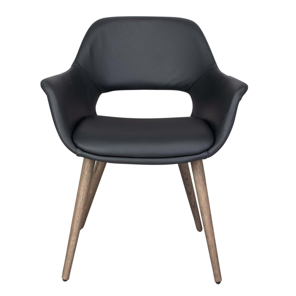 Fenja-stolens kombinasjon av organisk form, polstrede overflater og funksjonell åpning på baksiden noe som gjør den til et opplagt valg for profesjonelle miljøer. Det svarte skallet er lett å holde rent og motstandsdyktig mot daglig slitasje, mens det fine møbeltrekket sikrer optimal komfort for gjester og ansatte.