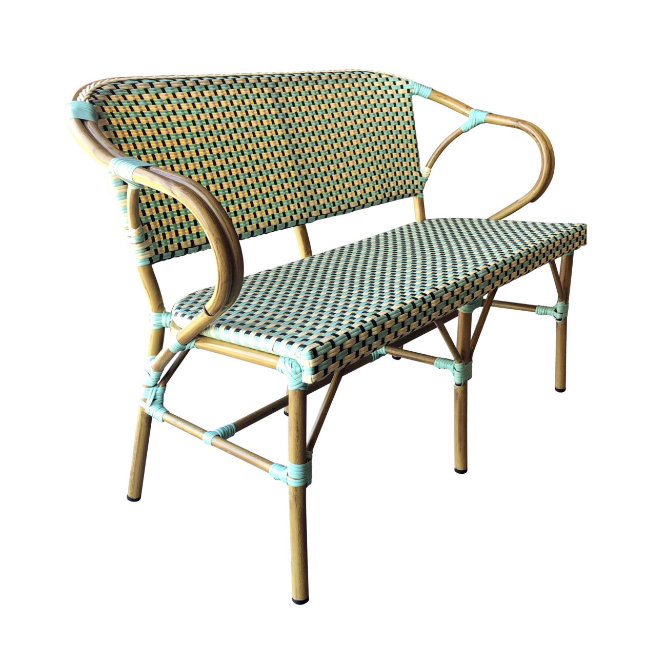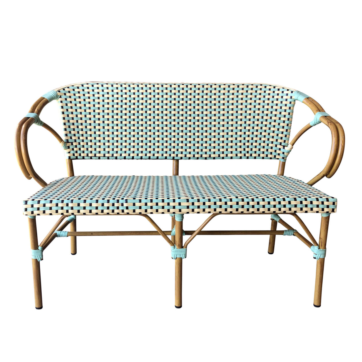 Startside / Møbler / Utemøbler / Utendørs stoler / Franske Bistro-utestoler / Frances utendørs sofa benk - Krem / lysegrønn - bambusramme - L.112CM