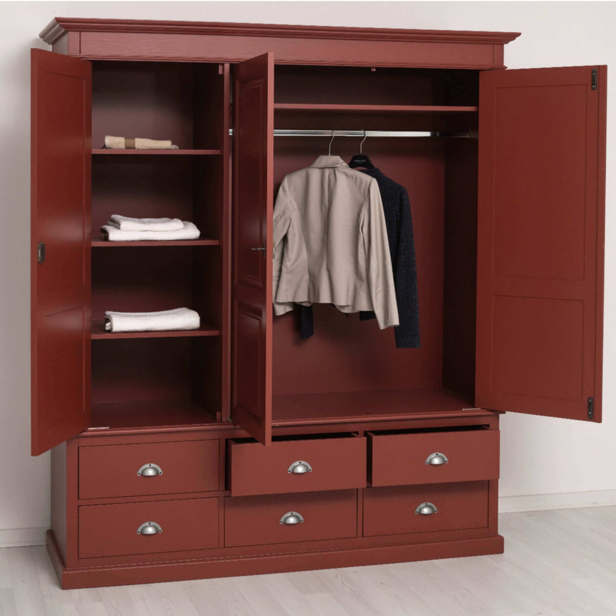 Med tre solide dører og seks skuffer har gjestene god plass til klær, bagasje og personlige eiendeler. Den velorganiserte inndelingen gjør det enkelt å skille skjorter, kjoler, bukser, sko og mindre tilbehør fra hverandre, slik at garderoben blir ryddig og brukervennlig. For hotellene betyr dette færre klager fra gjestene og en mye bedre totalopplevelse.