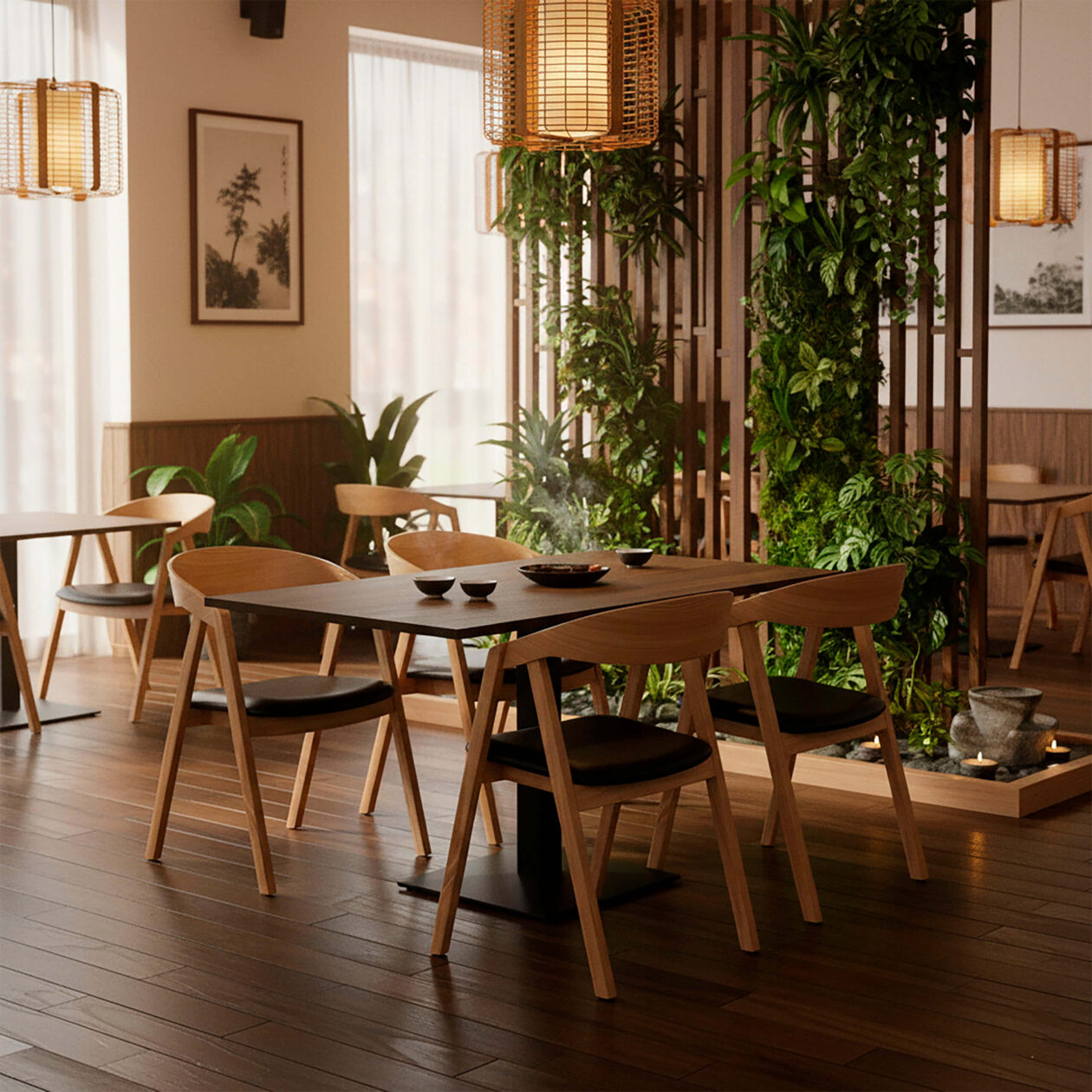 Den elegante Selma stoler i massiv eik gir et naturlig og varmt uttrykk, mens det svarte setet gir en moderne kontrast. Stolene er designet for profesjonell bruk, og tilbyr høy sittekomfort, stabil konstruksjon og enkelt vedlikehold - perfekt for restauranter og kantiner med mange daglige gjester.