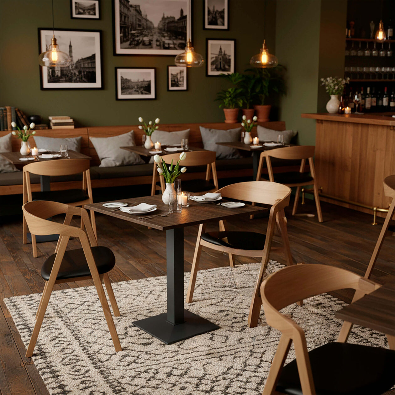 Café Set 25 – profesjonelt kafébord og stolpakke for restauranter og kantiner Velprøvd pakkeløsning med høy tilfredshet blant profesjonelle brukere Kafésett 25 er omfattende og gjennomtenkt kafébord og stolpakkeløsning, (Café Set25 Selma Oak Wengé 70×70 Aiko) designet spesielt for profesjonelle restauranter, kafeer og kantiner. På LOBO-kontrakt I mange år har vi levert skreddersydde interiører som passer perfekt til hvert enkelt konsept – og denne pakkeløsningen er en av våre mest populære takket være sin høye funksjonalitet, tidløse design og svært høye kundetilfredshet. Denne løsningen er ideell for steder hvor man ønsker et harmonisk utseende, høy slitestyrke og møbler som fungerer i et travelt hverdagsmiljø uten å kreve unødvendig vedlikehold. Innholdet i Café Set 25 – nøye utvalgt for profesjonell bruk Café Set 25 (Café Set 25 Selma Oak Wengé 70×70 Aiko) består av komponenter som er valgt med tanke på både estetikk og pålitelighet: 2 x Selma eikestoler med sorte seter 1 x Wengé melamin benkeplate – 70×70 cm 1 x Aiko svart bordramme Selma-stolene i massiv eik gir rommet varme og kvalitet, mens det svarte setet gir et moderne, kontrastrikt utseende og er praktisk i hverdagen. Stolene er komfortable, solide og passer både til kafé- og kantinemiljøer med mange daglige gjester. Den Wenge melamin benkeplate gir et elegant, mørkt utseende og er også ekstremt slitesterkt, lett å rengjøre og motstandsdyktig mot flekker og fuktighet. Dette gjør det ideelt som bordplate i restauranter, hvor drift og hygiene er viktige hensyn. Den svarte Aiko bordramme sikrer stabilitet, holdbarhet og et profesjonelt utseende. Bordrammen er designet for intensiv bruk og gir et solid fundament som holder bordet stabilt – selv på ujevne gulv. En fleksibel løsning for mange typer serveringsmiljøer Kafésett 25 passer til: Kafeer og kaffebarer Restauranter og bistroer Kantiner og personalrestauranter Mindre spiseområder og sittegrupper Pakkeløsningen gjør det enkelt å etablere eller oppgradere et interiør raskt og effektivt – uten å gå på akkord med kvalitet eller design. Hvorfor velge en pakkeløsning fra LOBO Contract? Hos LOBO-kontrakt Vi vet at profesjonelle kunder trenger pålitelige løsninger. Derfor er våre kafébord- og stolpakker basert på erfaringer fra virkelige prosjekter. Café Set 25 er en løsning som fungerer i praksis – både visuelt og funksjonelt. Kontakt LOBO Contract for råd og tilbud Vil du høre mer om Kafésett 25, eller ønsker du å tilpasse løsningen til ditt konsept? Vårt vennlige og erfarne salgsteam står klar til å gi deg råd om materialer, farger og alternativer. Kontakt LOBO Contract i dag for mer informasjon om Cafesæt 25. LOBO-kontrakt: Få et profesjonelt kafébord- og stolpakke som passer perfekt til din restaurant eller kantine. tlf: 47 31 46 46 00 Post: lobo@lobo-contract.dk se flere kafésett her