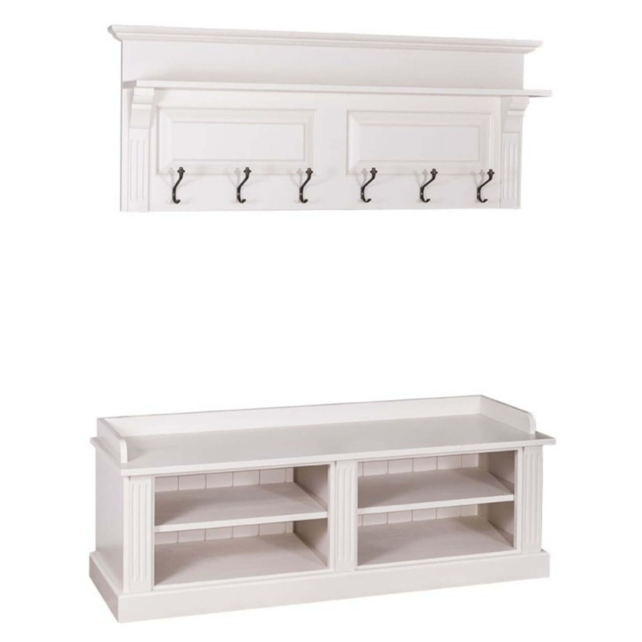 Konklusjon:Knagerække og kuffertbænk med hylder – B:148 - D:40 - er et ideelt valg for hoteller, kontorer, restauranter og butikker. Med sin solide furukonstruksjon, elegante ornamenter og fleksible fargevalg er den et profesjonell løsningsom både imponerer og varer i mange år.
