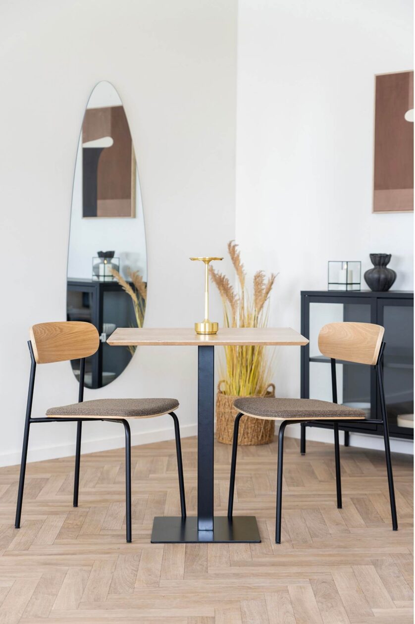 Den Mykt, brunt stoffsete Den nøytrale fargen gjør stolen enkel å integrere i mange ulike interiørstiler, og sikrer høy sittekomfort selv ved langvarig bruk. Stoffet er slitesterkt og lett å vedlikeholde, noe som gjør Alva-stolen perfekt for miljøer med høy aktivitet og daglig bruk.