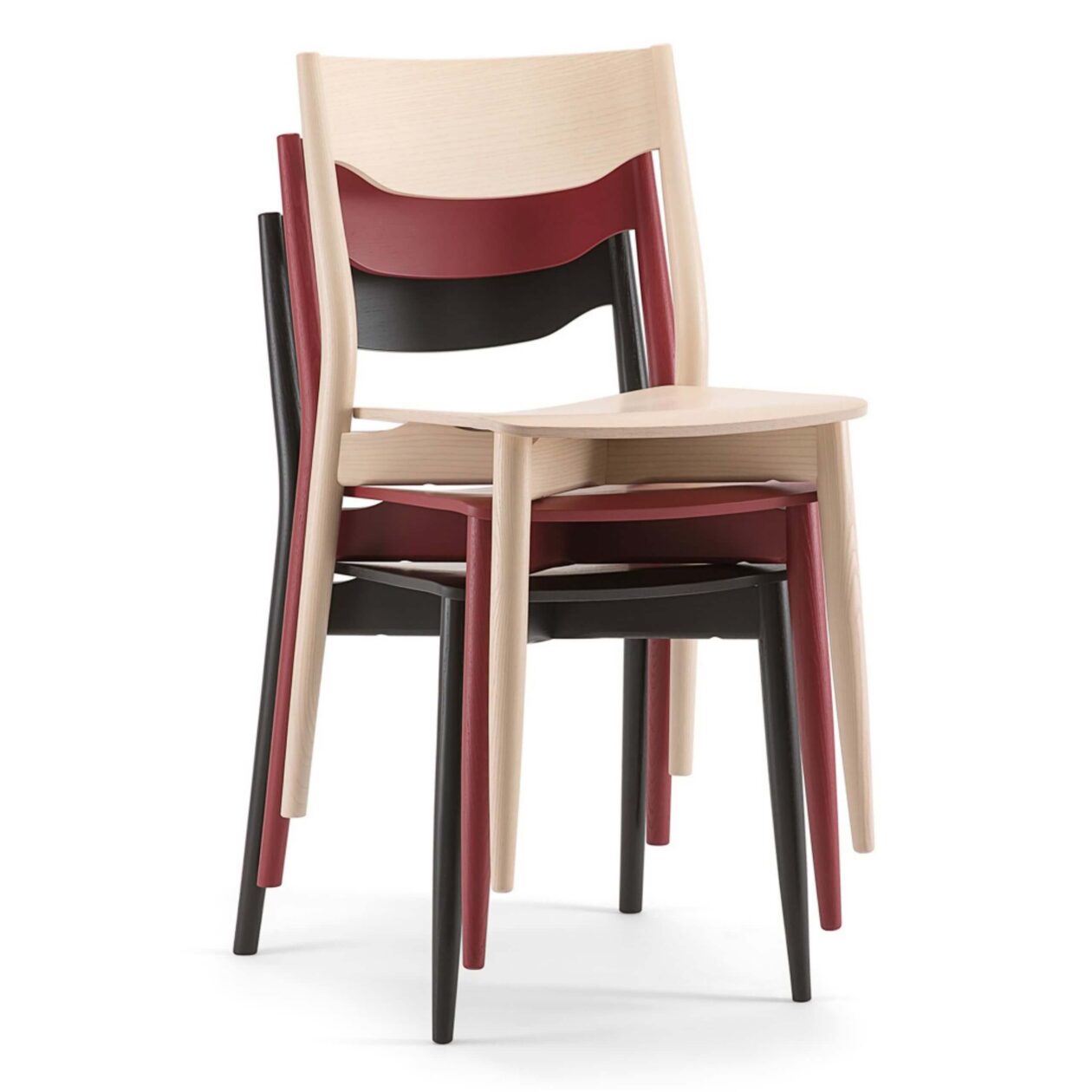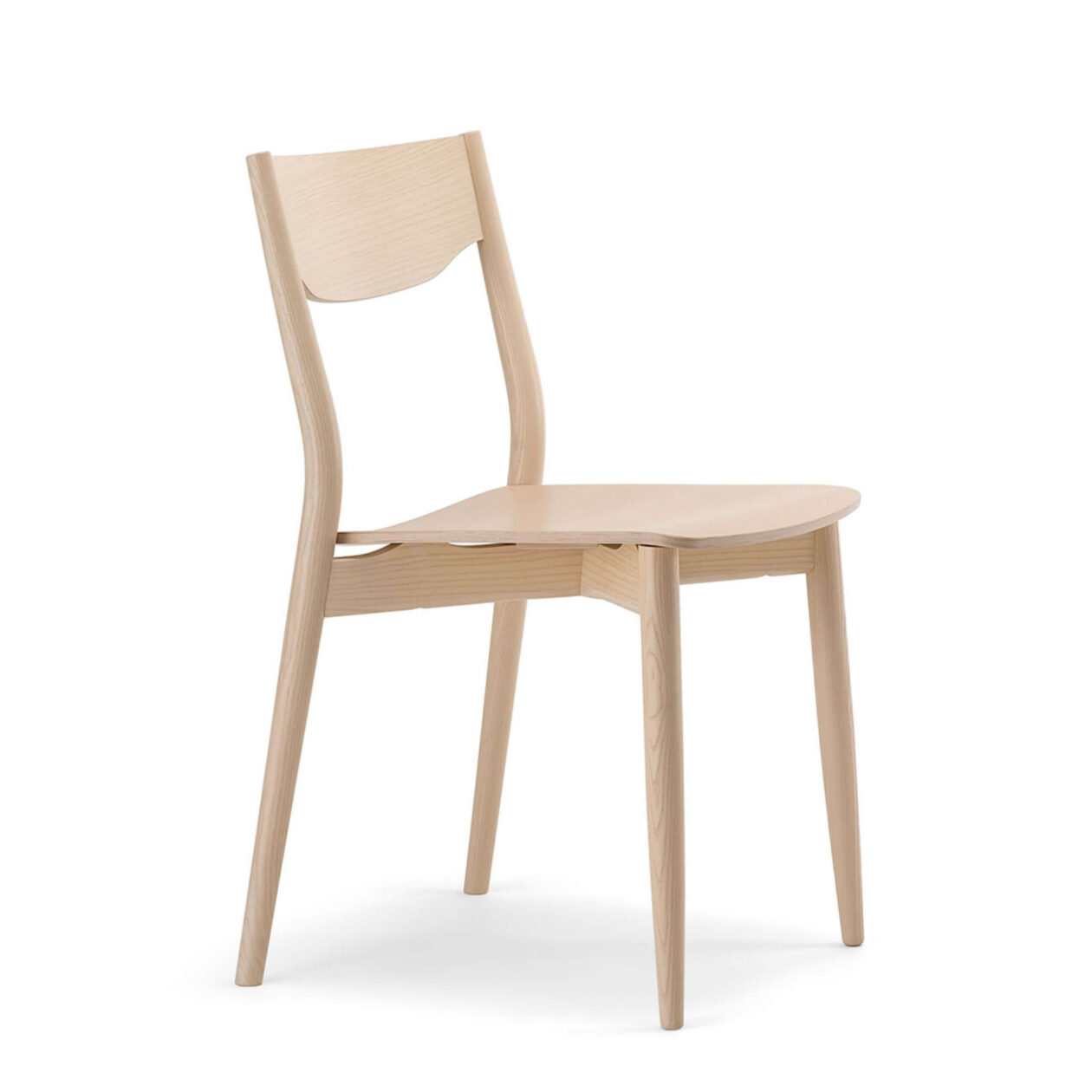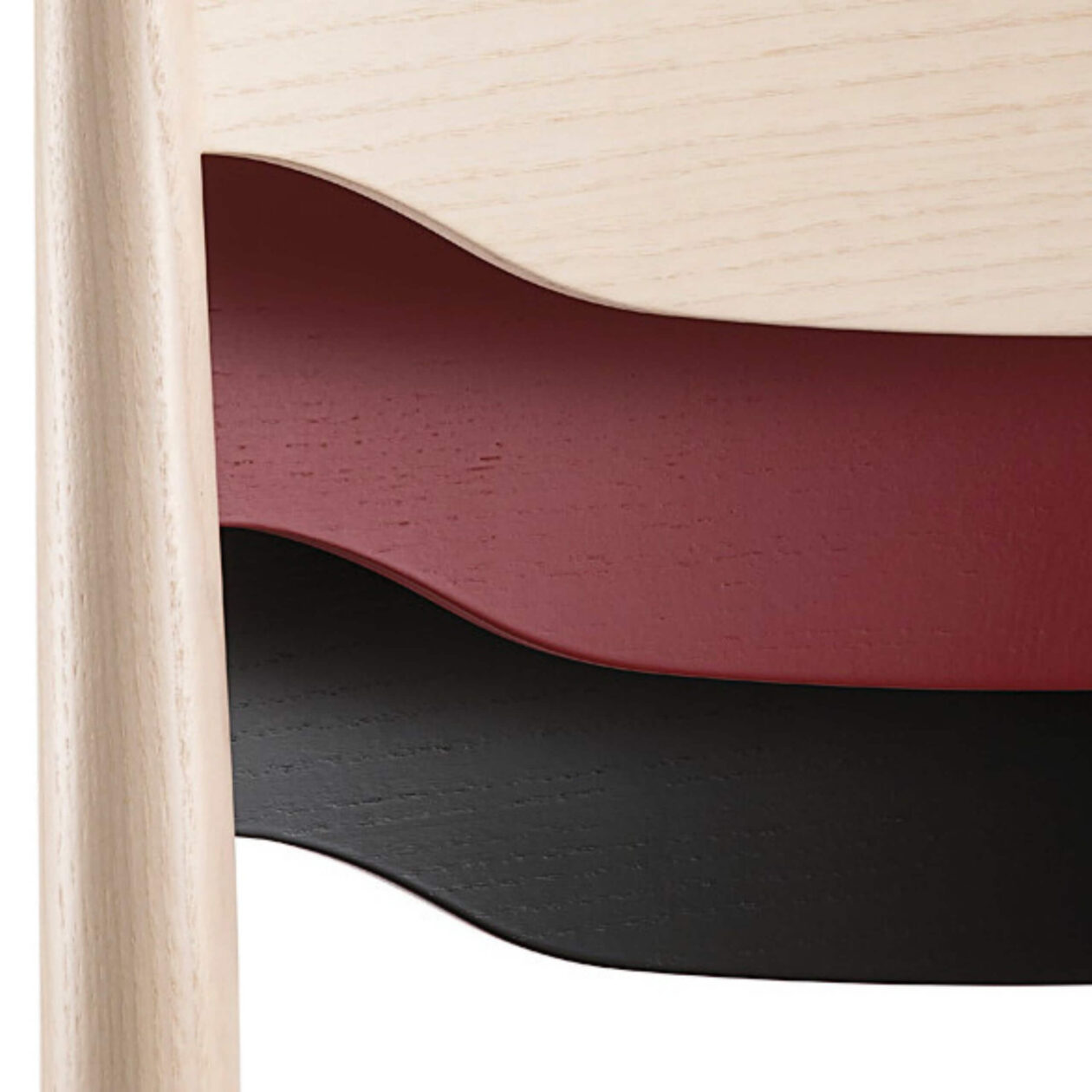 Nordia VS-stolen er laget med fokus på detaljer og håndverk. Setet i massivt tre er tilgjengelig i den trefargen kunden ønskersom gir stor fleksibilitet når det gjelder layout og design. Enten du foretrekker en lys bjørk, varm eik eller en mørkere valnøtt, kan stolen tilpasses etter bedriftens stil og atmosfære.