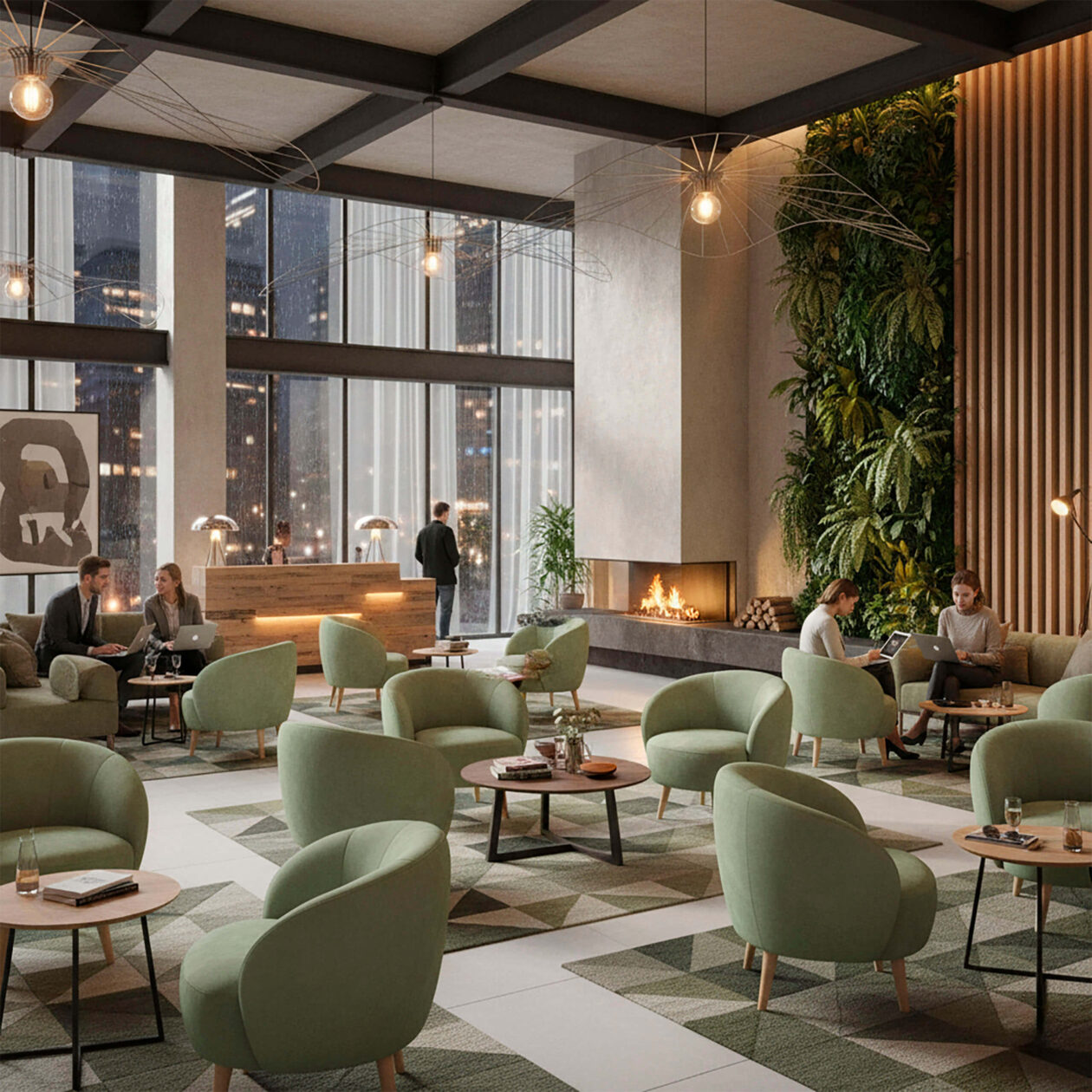 Gi gjestene dine en eksepsjonell komfortopplevelse med en lenestol som kombinerer naturinspirert design med profesjonell funksjonalitet.