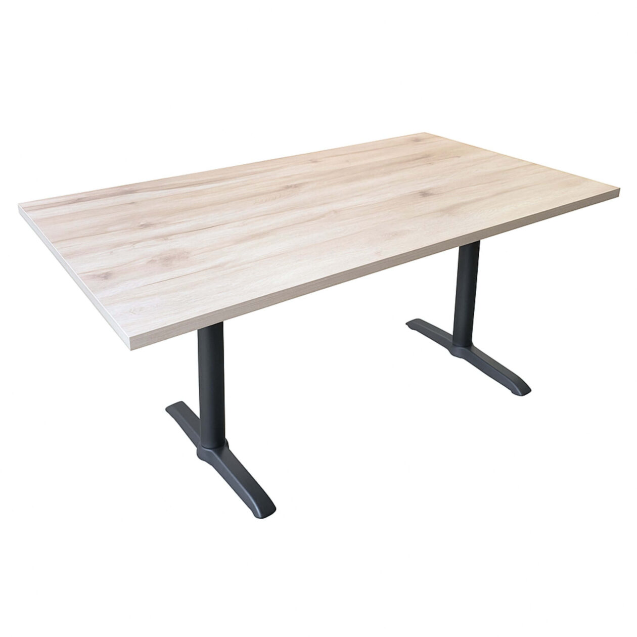 Detta cafébord - bordsskiva i melamin med ljus eklook 70×120 - Gafa dubbel svart bordsram kombinerar funktionalitet, hållbarhet och stil i en och samma lösning. Med en bänkskiva i melamin med ljus eklook 70×120 cm och en Gafa dubbel svart bordsram får du en möbel som är utformad för intensiv användning i professionella miljöer som caféer, restauranger, hotell och matsalar.
