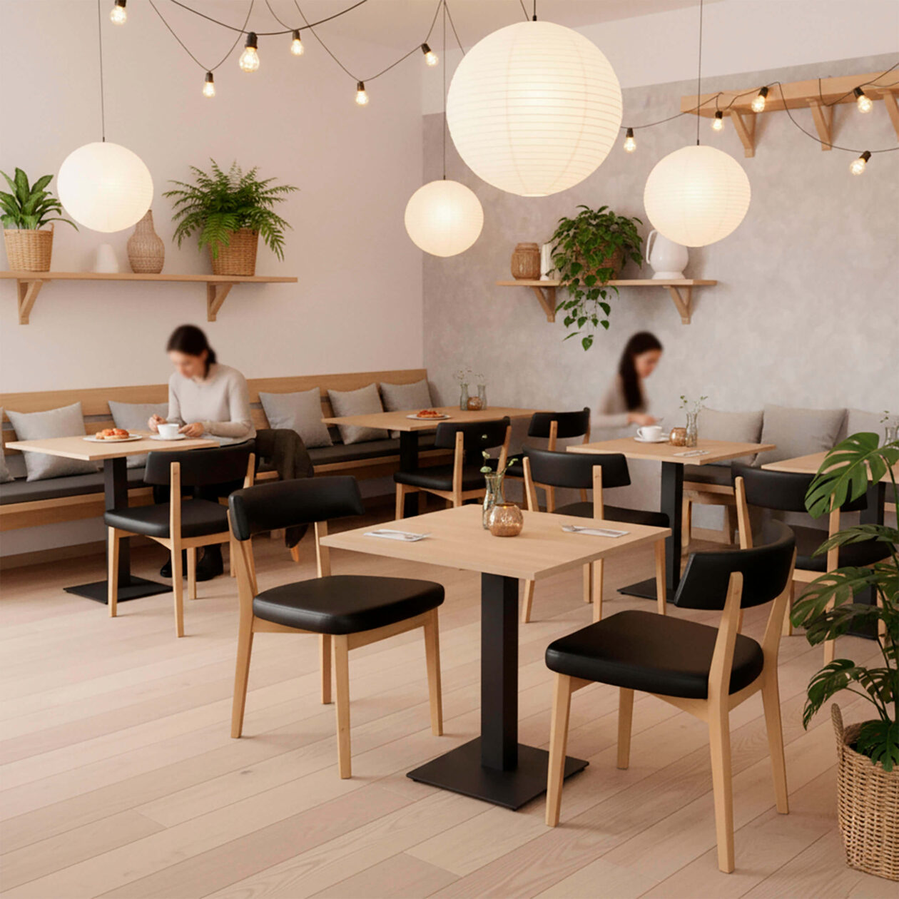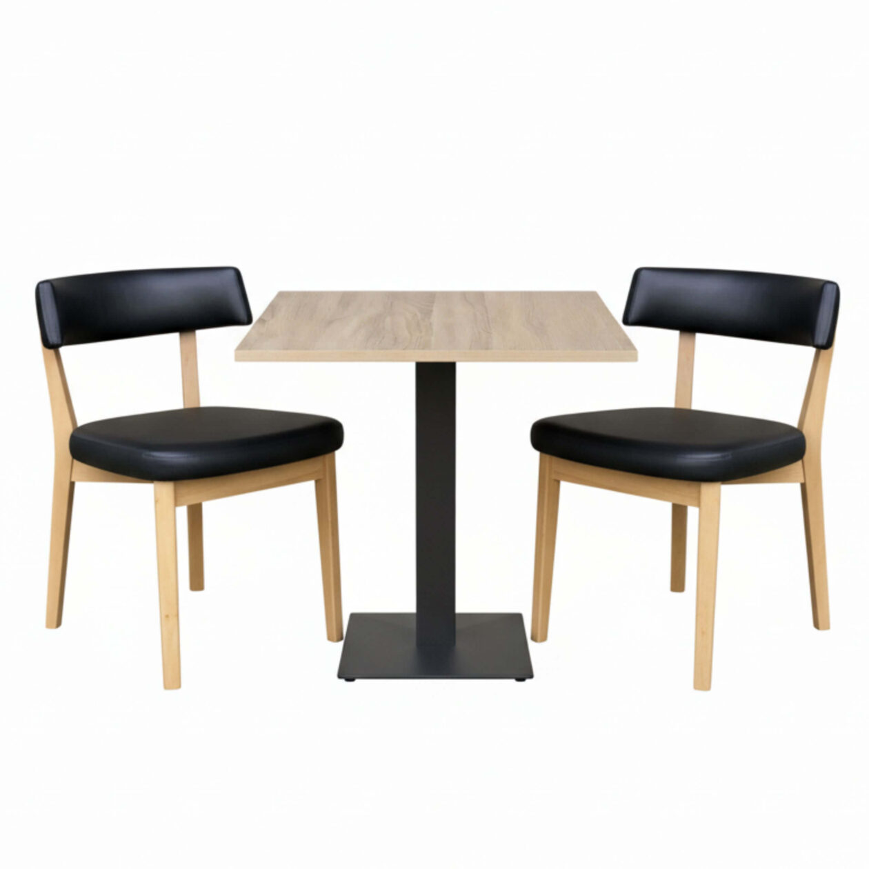 Denna serie passar särskilt bra för kaféer, små matplatser, loungeområden, takeaway-restauranger och kantiner, där utrymmesoptimering och estetik går hand i hand. Med en attraktiv kombination av ljus ek och svart stål får du en tidlös look som passar både modern, nordisk och klassisk inredningsstil.