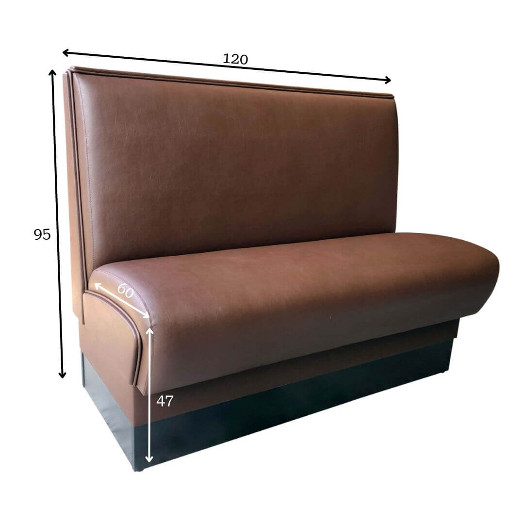 Letar du efter ett 2-sitsig bänk för restaurang, café eller hoteller Fairmont - Brun bänk på sockel - slät rygg - L 120cm är en snygg och funktionell Bänk på sockelDen är utformad med hållbarhet, komfort och estetik i åtanke och är ett praktiskt och elegant val. Kontakta oss idag för en offert utan förpliktelse eller råd om din inredning.