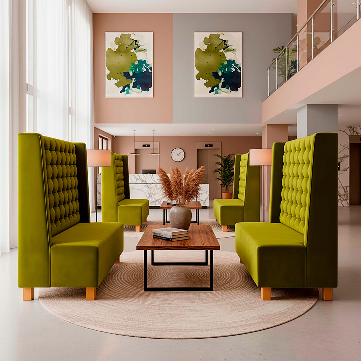 Oakdale soffbänk – Exklusiv Chesterfield-komfort för professionella restauranger och matsalar En soffbänk med unik charm och en framträdande ryggstöd Soffbänken Oakdale är designad för professionella restauranger, kaféer och kantiner som vill ha möbler med karaktär, kvalitet och visuell effekt. Med sin distinkta, extra höga Chesterfield-knäppta rygg ger Oakdale omedelbart en känsla av exklusivitet och elegans till alla rum. Den karakteristiska ryggen med djupa knappar ger ett starkt designuttryck och skapar en speciell atmosfär som är både inbjudande och stilfull. Förutom sitt tilltalande utseende har Oakdale utformats för att ge maximal komfort. Den bekväma, välklädda sitsen erbjuder en avslappnad och behaglig sittupplevelse, vilket gör bänken idealisk för både längre vistelser och intensiva arbetsmiljöer. Kombinationen av det höga ryggstödet och de använda materialen garanterar stöd och ergonomi som överträffar traditionella matbänkar. Utvecklad för professionellt bruk – byggd för att hålla I restaurang- och kantinmiljöer är hållbarhet, stabilitet och enkel rengöring avgörande. Oakdale soffbänk är tillverkad av högkvalitativa material och gediget hantverk, vilket gör den perfekt för daglig användning i miljöer med hög trafik. Det höga ryggstödet bidrar inte bara till ett elegant utseende, utan fungerar också som ett funktionellt element som skapar mer avskildhet och en exklusiv matupplevelse. Oakdale är perfekt för: Restauranger med fokus på atmosfär och komfort Matsalar där hög kvalitet och utseende är önskvärt Kaféer, hotellounger och barområden Exklusiva brasserier och bistroer Professionella inredningsprojekt med fokus på design Finns i valfria färger, klädsel och material För att Oakdale soffbänk ska passa perfekt in i din inredning finns den i ett brett utbud av färger och material. Du kan välja mellan: Möbeltyger i många olika strukturer och färger Konstläder – slitstarkt och lätt att rengöra Äkta läder för den mest exklusiva looken Specialtyger och specialalternativ enligt överenskommelse Vi hjälper dig gärna att välja rätt material så att bänken passar in i din restaurangs eller matsals estetik, funktionalitet och slitaget. Skapa en exklusiv miljö med soffbänken Oakdale Om du vill ha en soffbänk som kombinerar den distinkta Chesterfield-stilen med enastående komfort och professionell hållbarhet är Oakdale det självklara valet. Kontakta Lobo Contract idag för material, färgprover och en kostnadsfri offert – vi hjälper dig att skapa den perfekta lösningen för din professionella miljö. tel: 47 31 46 46 00 Post: lobo@lobo-contract.dk Se fler bänklösningar här Se fler loungesoffor här