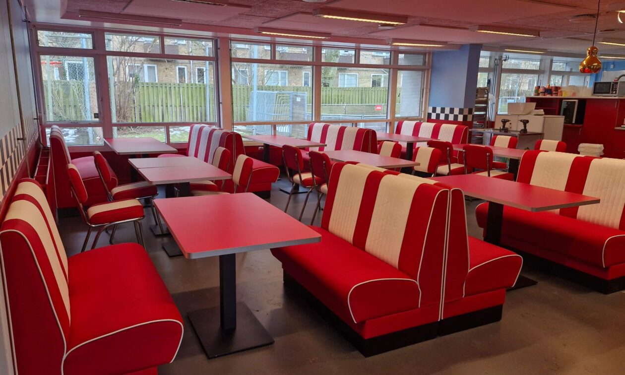 Klub Norden - Frederiksberg har uppgraderat sin klubb rejält. Med de nya dinermöblerna i rött och vitt har de skapat ett universum för sina barn som är inspirerande och gör området mycket roligare och mysigare att vistas i.