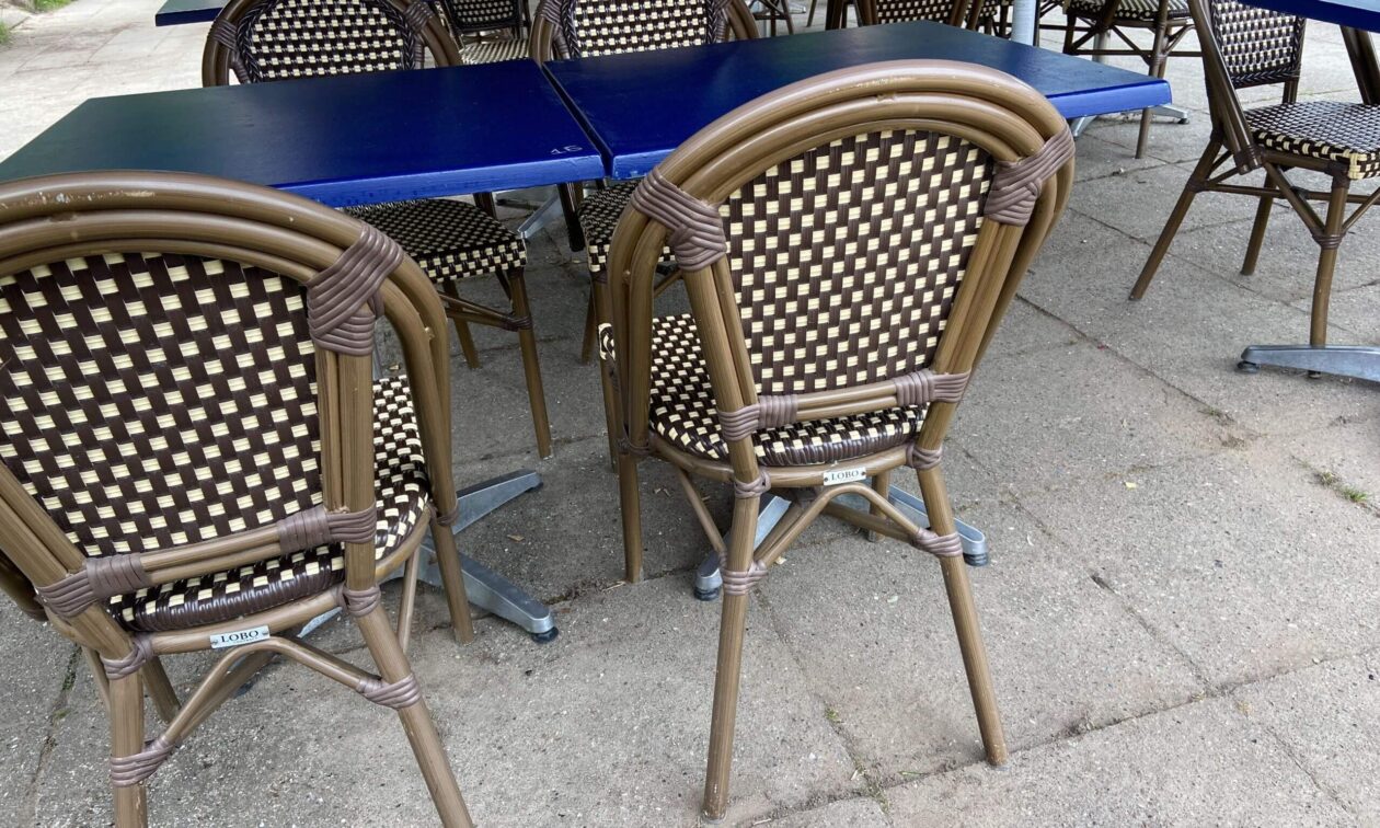 Underground Mad og Ishus - Samsø fick leverans av stolen Seinen, utomhusbordsskivorna Caffe Sack och bordsstativet Corsica