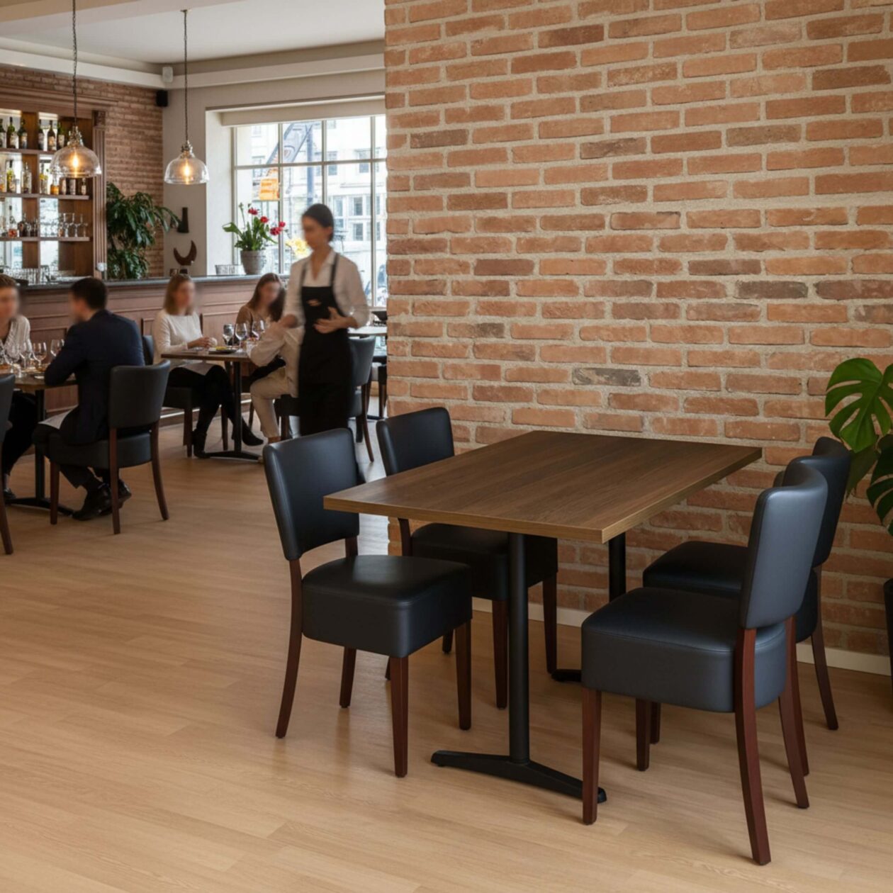 Når du indretter caféer, restauranter, hoteller eller kantiner, er det vigtigt at vælge møbler, der kombinerer funktionalitet, holdbarhed og æstetik. Med Cafesæt 7 – 4 Isabella sorte stole – Wengé melamin bordplade 70×120 – Gafa dobbelt sort bordstel får du et komplet møbelsæt. Dette sæt er skræddersyet til professionelle miljøer, hvor både udseende og praktisk anvendelighed er altafgørende.