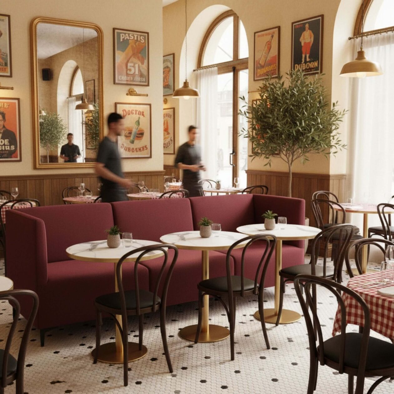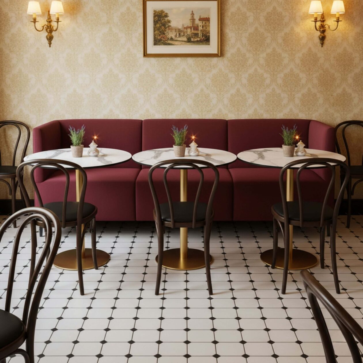 Sofabænken leveres som standard i målene L: 240 cm – D: 60 cm – H: 90 cm med en ergonomisk siddehøjde på 47 cm, der sikrer komfort ved både kortere og længere ophold. De slanke metalben giver bænken et let og elegant udtryk, samtidig med at de bidrager til høj stabilitet og lang levetid – selv i miljøer med intensiv daglig brug.