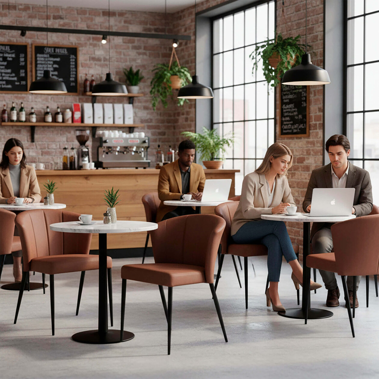 Den populære Thor stol i cognac er skabt til professionelle miljøer, hvor både æstetik, funktionalitet og slidstyrke er afgørende. Den kombinerer et moderne, varmt cognacfarvet udtryk med en stilren ramme og en komfortabel, smart polstring. Resultatet er en restaurantstol, der både fremstår eksklusiv og praktisk – ideel til restauranter, caféer, bistroer, kantiner og hoteller.