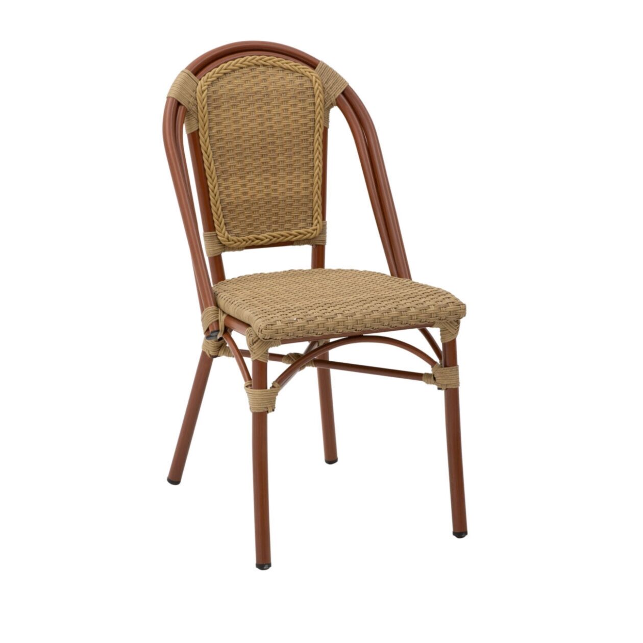 De populære Paris stole i brun/brun kombinerer klassisk caféæstetik med moderne materialer. Stolene er fremstillet med en solid aluminiumsramme og betrukket med UV-bestandigt polyrattan i varm brun farve. Dette giver et naturligt og imødekommende look, som matcher mange typer udendørsindretning – fra trendy bycaféer til hyggelige hotelterrasser.
