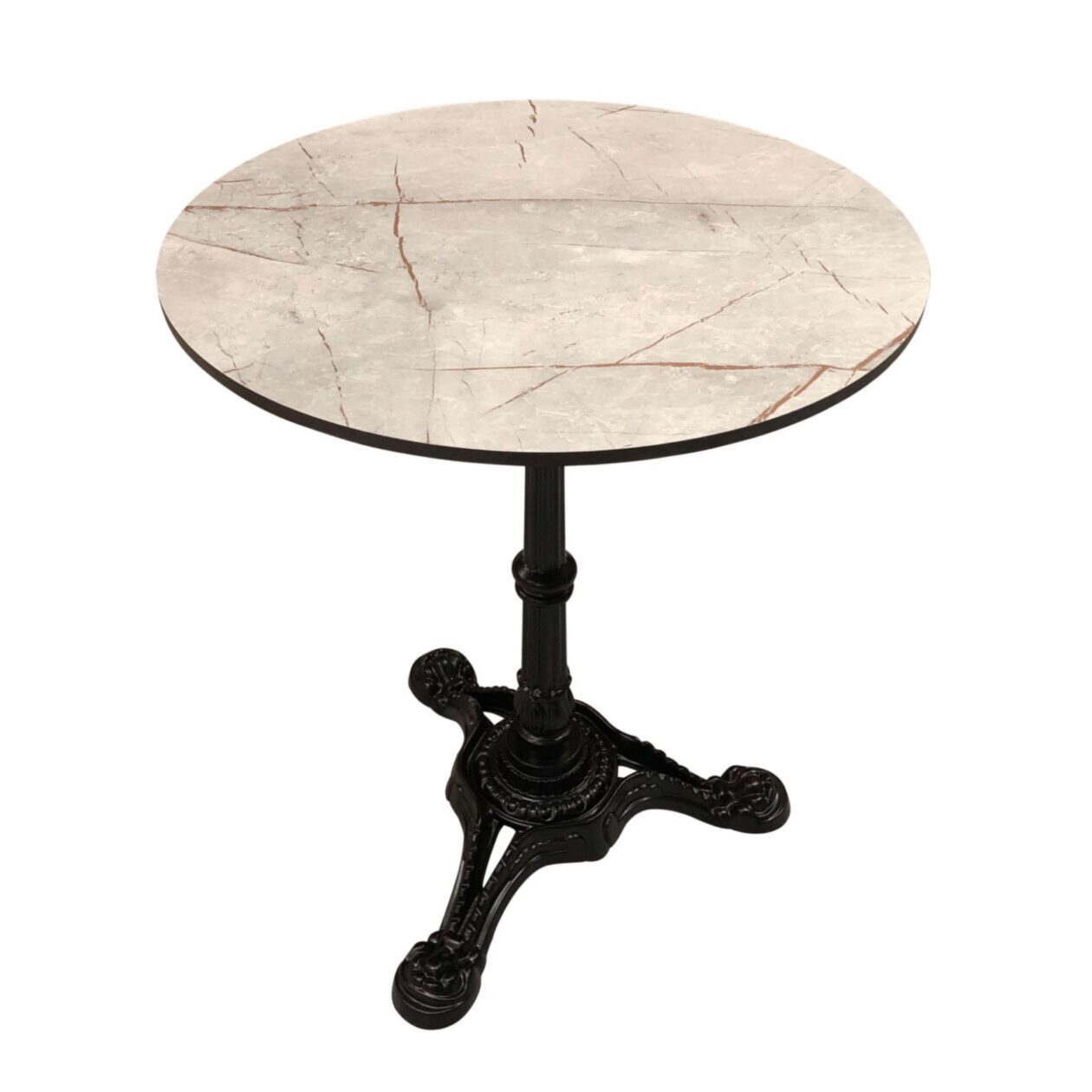 Forside / Møbler / Udendørs Møbler / Udendørs cafesæt / Udendørs cafesæt 1 – 2 x Paris Brun/Brun stole – 1 x Grey Caspio Ø60 bordplade – 1 x Løvefod 3 bordstel